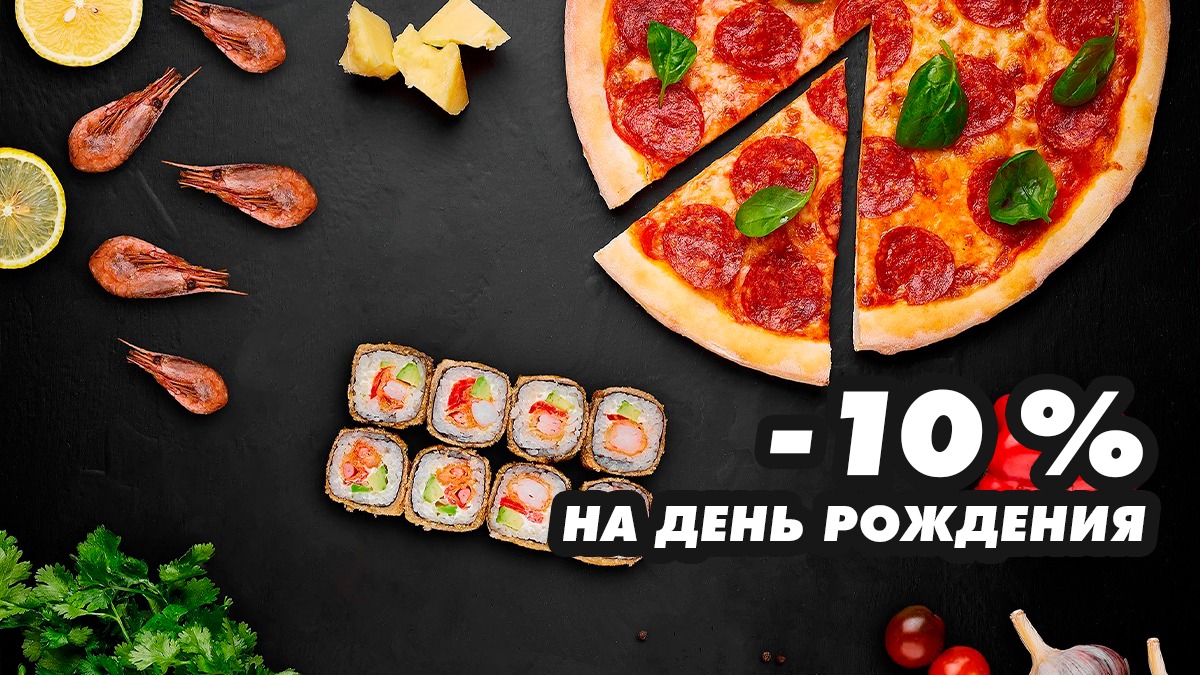 Скидку 10% на весь чек при заказе всего меню, кроме комбо в ваш день рождения, а также в течение 3 дней до и после него!